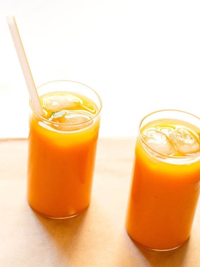 - Serve the mango iced tea in tall glasses with some ice cubes garnished with mint leaves or mango slices or lemon slices.